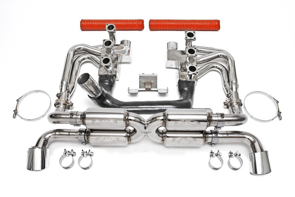 This complete headers back high performance exhaust system provides loud & aggressive CUP car sound with dual outlets.